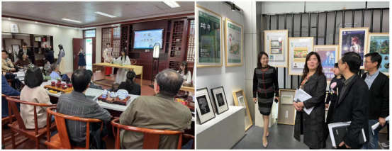 与会人员先后来到艺术传媒学院和园林园艺学院交流专业建设成果。结合正在进行的第八届职业教育活动周安排,参观了极具特色的学生优秀作品展,感受艺术传媒学院以“艺”战“疫”的教学成果;实地体验储金霞铁画大师工作室、园林工程展厅等别具一格的实训基地,感受中华传统文化的传承魅力和精益求精的工匠精神;欣赏园林园艺学院茶艺协会的同学带来的茶艺表演,感受理实一体、育训结合培养下的青年风采。