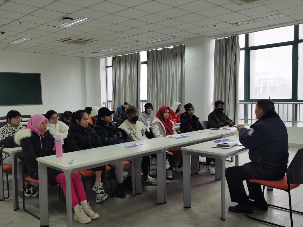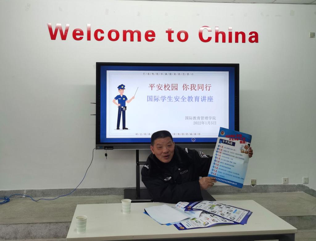 为提高我校国际学生预防网络诈骗的能力,增强安全防范意识,切实保障学生的利益,维护校园安全稳定,1月6日,我院邀请到高校园区派出所社区民警周英坤开展主题为“平安校园,你我同行”的安全教育讲座。