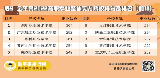 “金平果”2022高职专业群及专业排行榜是按照“十四五”国家经济社会发展和2035年远景目标对职业教育的要求, 基于新版专业目录的第一次专业评价。学校结合“双高计划建设”和“职教本科创建”两大重点任务建设,将进一步从品牌专业打造、师资队伍建设等多角度打通内涵发展各个环节,进一步优化人才环境和专业布局,主动对接产业需求,树立品牌意识,深层次、多维度挖掘专业建设潜力,攻克专业发展瓶颈,做强做精专业。以勇争一流的志气、先破后立的勇气、系统谋划的底气,谋好篇,布好局,将学校内涵式高质量发展工作引向新征程,力争在“十四五”期间取得新的更大成就,推动职业教育类型发展迈向新高度。(文、图/方梁羽 审/娄洁)