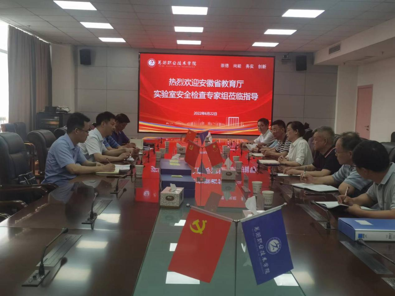 根据省教育厅工作安排,6月22日下午,安徽省教育厅高校实验室安全检查专家组第15组组长安徽工程大学科技处处长凤权教授,国资设备处副处长胡章文副教授,现教中心副处长冒国兵副教授、机械工程学院陈玉副教授一行莅临我校,对我校实验室安全工作进行现场检查指导。校党委委员、教务处处长娄洁教授主持汇报会,教务处、保卫处、材料工程学院、建筑工程学院、食品与生物工程学院相关负责人陪同检查。