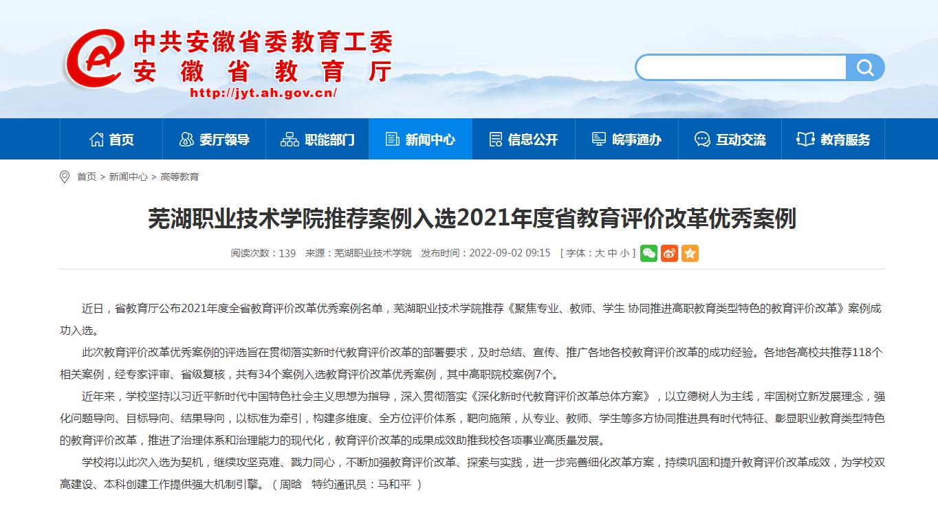近日,省教育厅公布2021年度全省教育评价改革优秀案例名单,新时代赌场341940推荐《聚焦专业、教师、学生 协同推进高职教育类型特色的教育评价改革》案例成功入选。