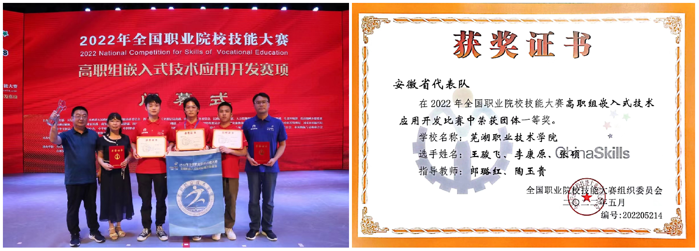 根据《教育部关于举办2022年全国职业院校技能大赛的通知》(教职成函〔2022〕4号)文件精神,自8月起,2022年全国职业院校技能大赛在天津、河北、山西、山东、安徽等27个赛区举行,共设102个赛项。我校共派出13支代表队征战本次全国职业院校技能大赛。截止目前,在已经结束的12个赛项中,我校荣获一等奖1项,二等奖4项,三等奖6项。其中,信息与人工智能学院郎璐红、陶玉贵老师指导的王骏飞、李康原、张硕团队在“嵌入式技术应用开发”赛项中折桂,也是自2010年在“嵌入式产品开发”项目中捧杯后再次圆梦。