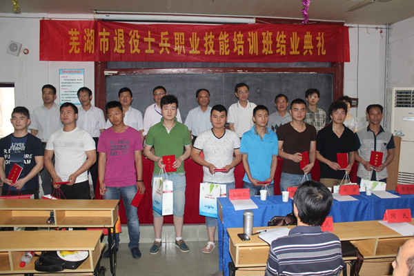 5月26日上午,我院隆重举行了芜湖市2013年退役士兵职业技能培训班结业典礼,学院副院长高武、市民政局安置办主任李潜、芜湖诺康生物科技有限公司董事长许震和镜湖区、无为县、鸠江区、弋江区、三山区、经济技术开发区民政局领导出席了本次典礼,典礼由继续教育学院负责人荣世雄主持。